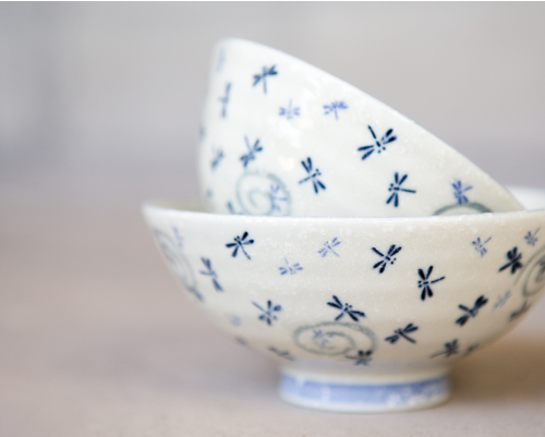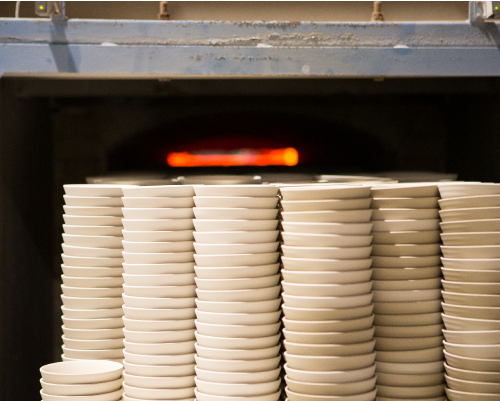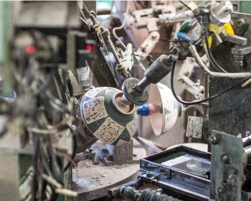 カネ久製陶のこだわり 陶器の原材料である土は「生きもの」です。 その日その日の気温・湿度により土の質も変わるため、品質の維持には経験と技術が必要です。 カネ久製陶は日々の気候や気温・湿度の変化に合わせ、材料の配合や各工程にかける時間を調整し、安定した高い水準を保っています。 また、製造機械の維持にも気を配っています。毎日大量の陶器を生産し続ければ、機械も少しずつ劣化していきます。不具合が見つかったとしても、何十年もの経験があるからこそ、すぐに原因を突き止めることができるのです。こうしてキズや歪みのない高品質な製品を作り続けています。 茶碗のデザインにも流行があります。カネ久製陶は時代に合わせた流行を取り入れ、常にお客様のニーズにあったデザインを作り続けています。 現在取り扱いがある商品は100種類以上にのぼり、古典柄から雑貨屋さんに置かれるようなモダンなデザイン、子ども用のカラフルでポップなデザインまで、幅広いバリエーションの製品を取り揃えています。 昔に比べ現在では茶碗作りの技術が広がり、機械の技術も発展し、中国などで安価な茶碗が大量に作られるようになりました。 そのようにして作られた茶碗は何十年後かには消えてしまう商品です。本当に売れるもの、そして真似できない技術が最後には残ります。 カネ久製陶の茶碗作りの製法は複雑ではありません。しかし、簡単に真似できるものでもありません。撥水絵付けや線引きなど、1つ1つの工程を丁寧におこなうことで茶碗の完成度が格段に上がります。